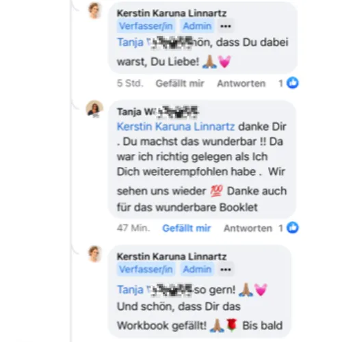 Lies weitere Kundenbewertungen meiner Coachings und Ausbildungen (Klicke auf das jeweilige Bild):